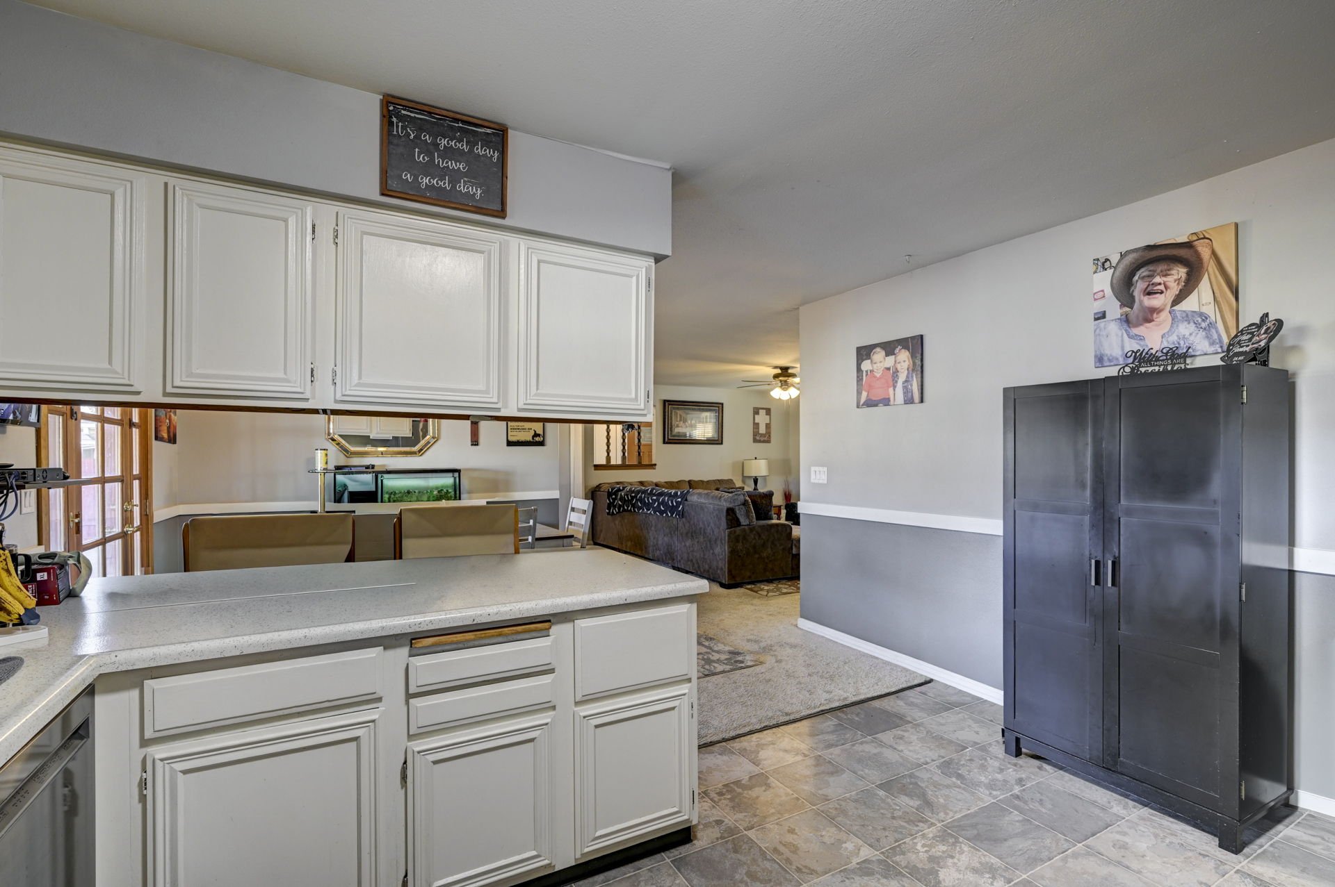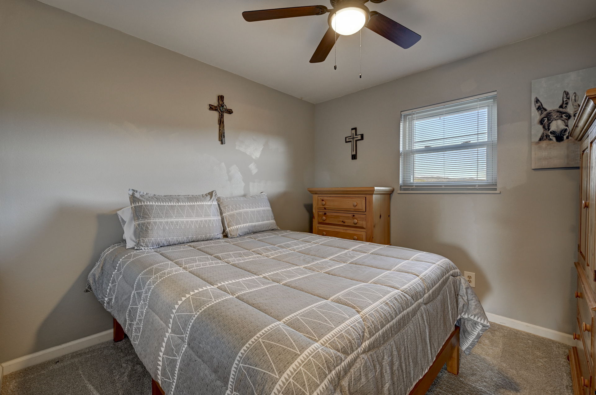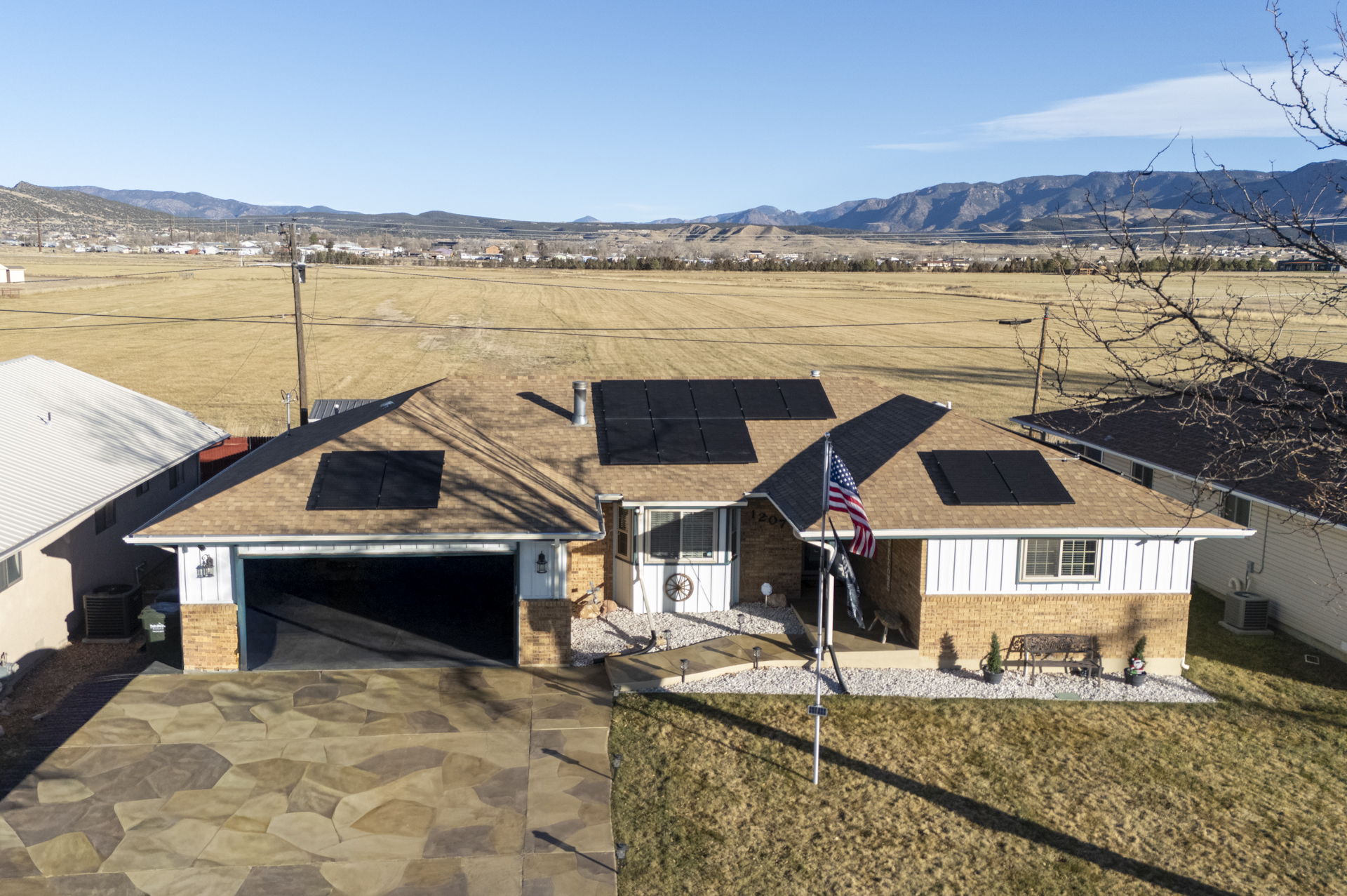 There are homes, and then there are great homes! This is one of those great ones! As soon as you arrive, you are immediately greeted by the newly rocked yard, and the custom stamped, extra wide driveway. Inside the home, you'll find an open living area with family room, dinning room and kitchen. The dinning area walks out to the brand new covered patio, which is an incredible place to bbq, or just enjoy the sunset and mountain views. The kitchen has been updated with stainless steel appliances and new fixtures. The home also features 3 large bedrooms, including the primary bedroom and en suite bathroom. The garage has been fully insulated with an additional 4" of insulation, drywalled and painted. The home has been updated with new paint, carpet, fixtures and so much more. Enjoy low utility bills with the solar panels. You definitely want to check out this incredible, cozy home soon!