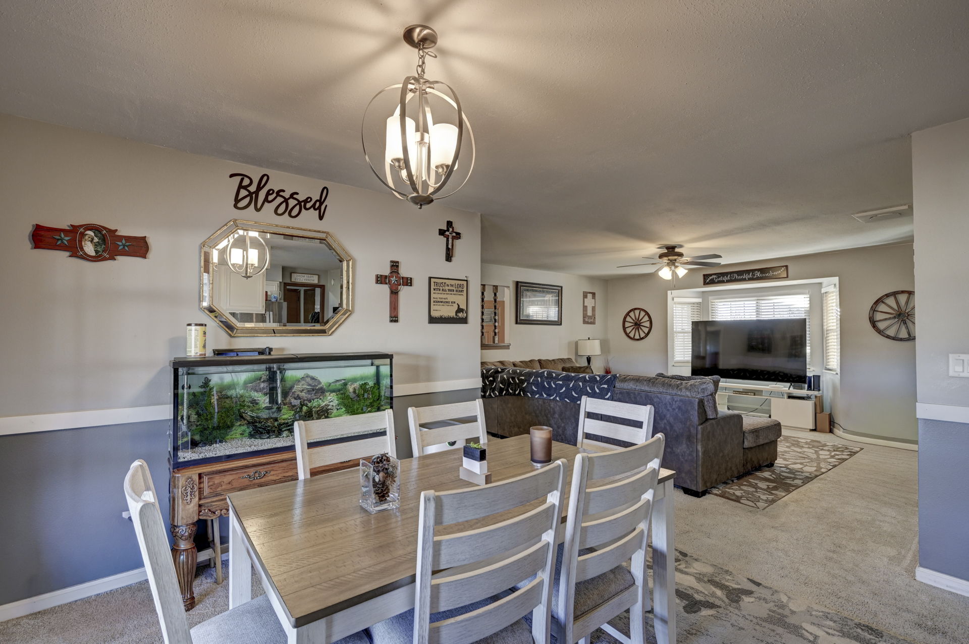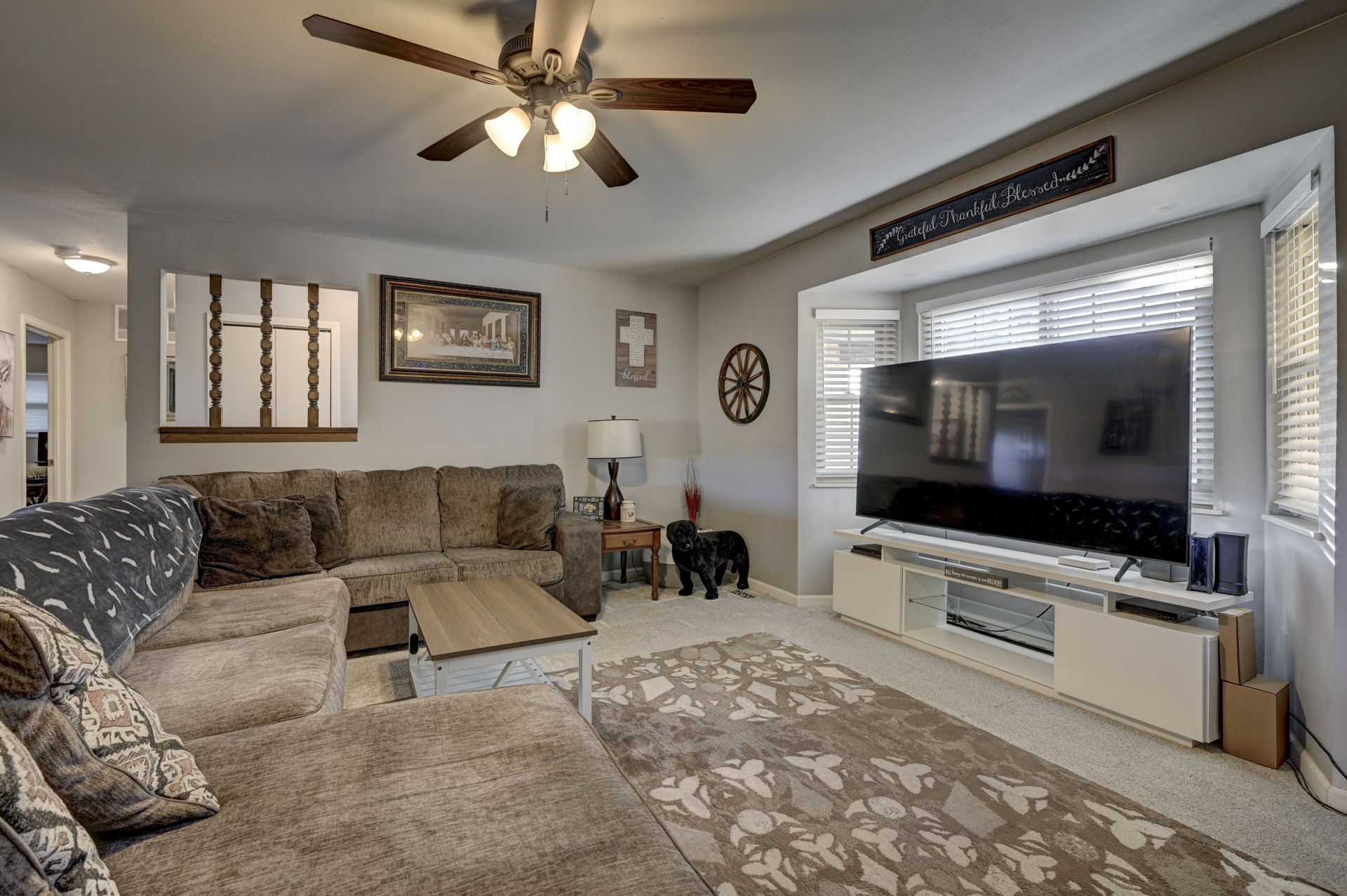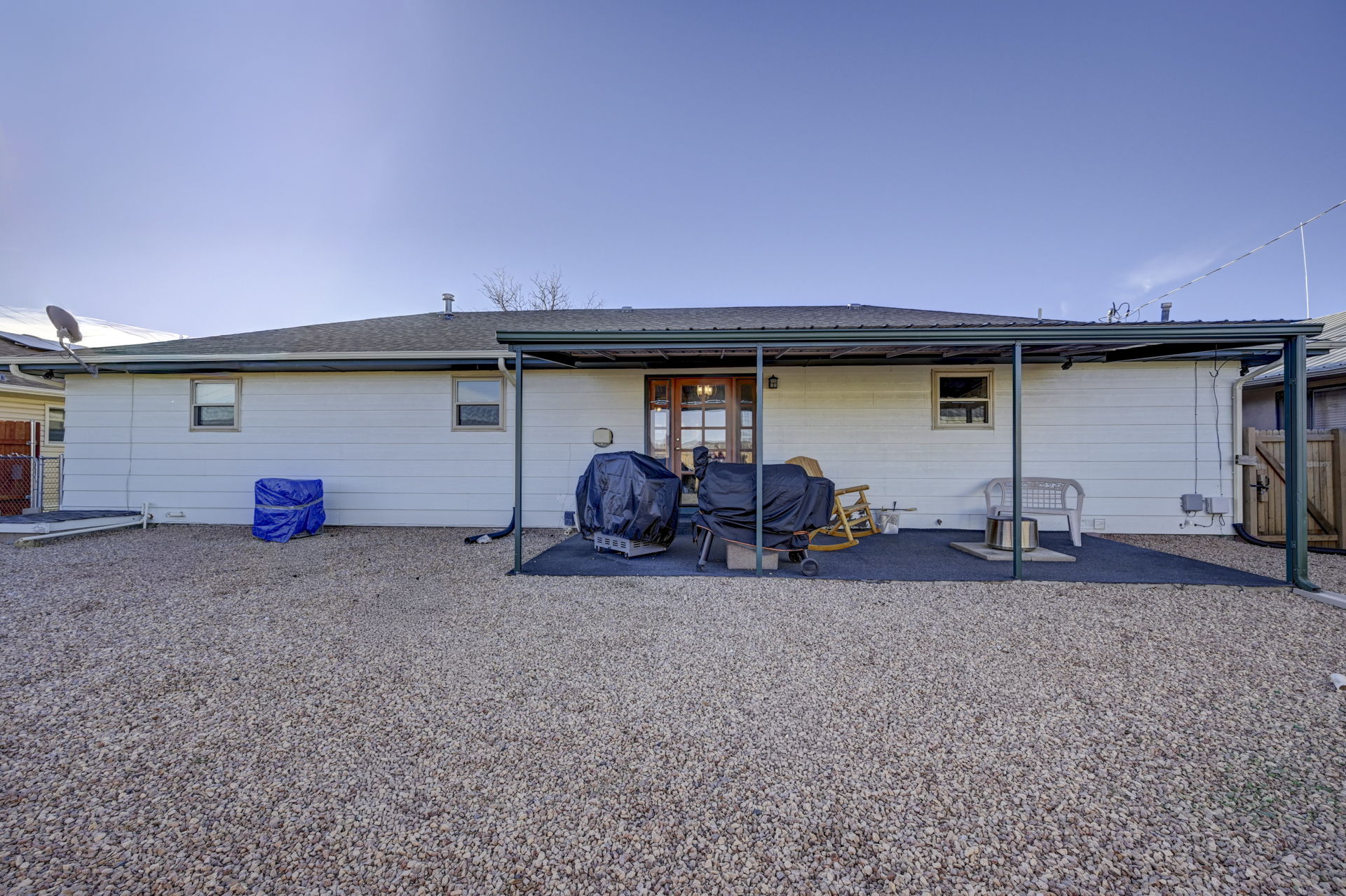 There are homes, and then there are great homes! This is one of those great ones! As soon as you arrive, you are immediately greeted by the newly rocked yard, and the custom stamped, extra wide driveway. Inside the home, you'll find an open living area with family room, dinning room and kitchen. The dinning area walks out to the brand new covered patio, which is an incredible place to bbq, or just enjoy the sunset and mountain views. The kitchen has been updated with stainless steel appliances and new fixtures. The home also features 3 large bedrooms, including the primary bedroom and en suite bathroom. The garage has been fully insulated with an additional 4" of insulation, drywalled and painted. The home has been updated with new paint, carpet, fixtures and so much more. Enjoy low utility bills with the solar panels. You definitely want to check out this incredible, cozy home soon!